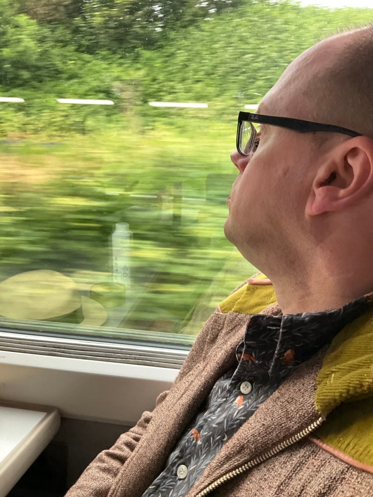 The man sitting across from her is on his cellphone. “Just tell them we met by accident at the pub”. You hear a women’s voice on the other side of the line, high pitched and muffled. A quiet “I love you” as the train pulls into the station.