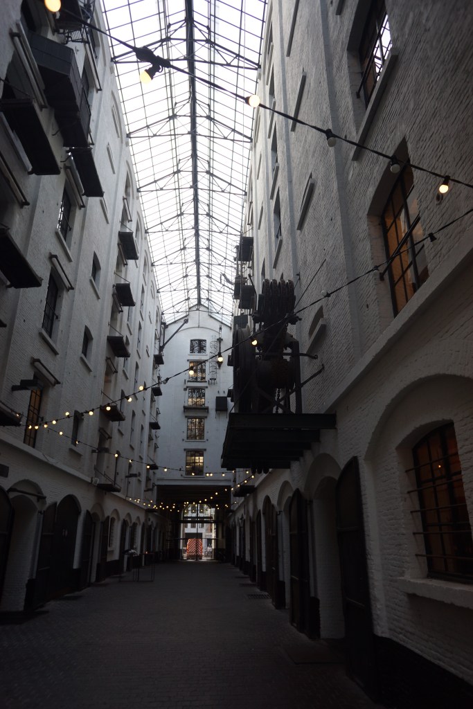 We first saw a warehouse building. The boats would bring goods to the building and then using a pully system, would hoist up to the various windows for storage. The place is now a fancy hotel, restaurant place. Still very cool.