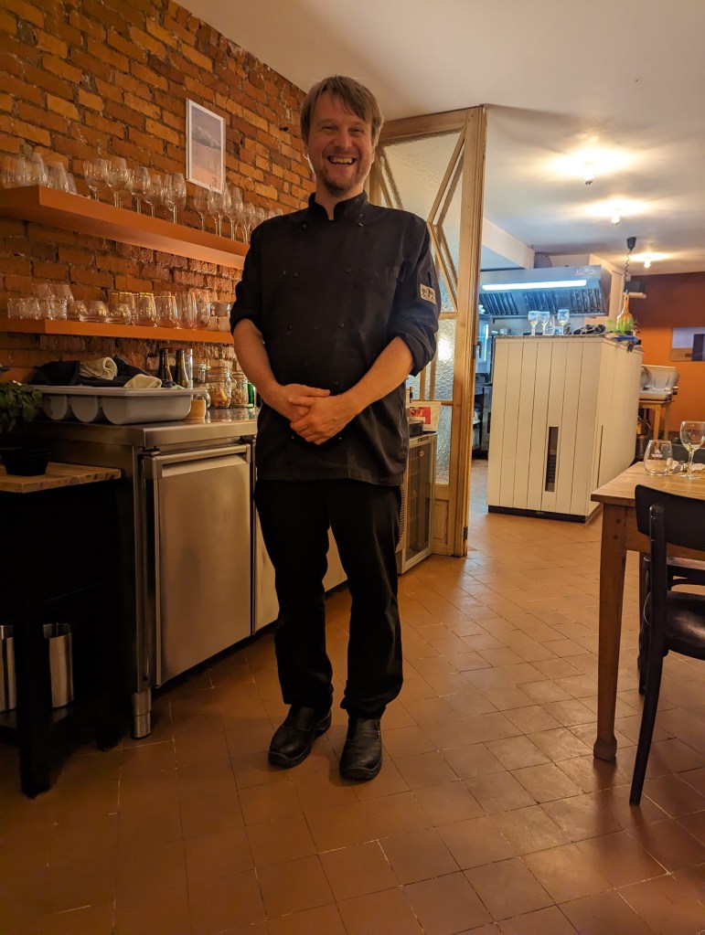 Run by Guy, One Guy cooking. One Guy is also maître de, server, cleaner, host. Guy was alone in cooking and serving and a delight in his passion about beer and food.