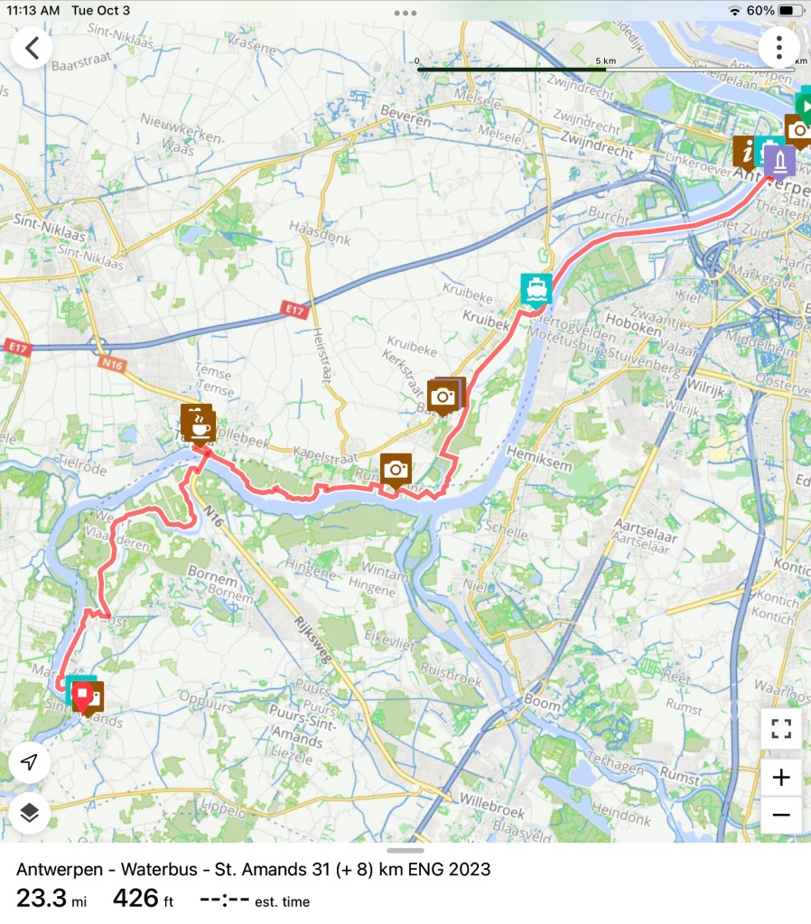 Rainy, windy day, I stayed on the boat and John biked 50km to Ghent.