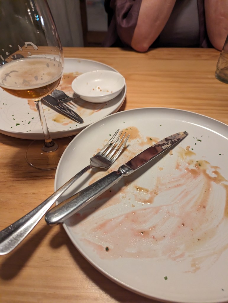 Every dish was served with an accompanying beer and even though John didn’t finish each one, he tried each one with the accompanying dish. We both loved the experience, ambiance and mostly loved Guy.